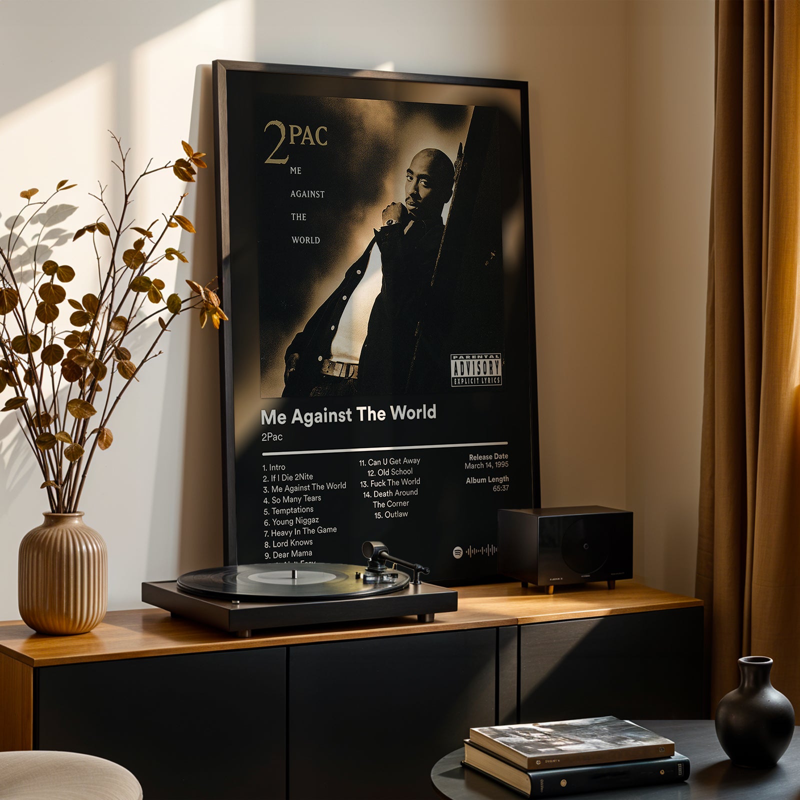This Me Against The World poster features one of 2Pac’s most iconic covers and full tracklist presentation, giving the album a museum-style display aesthetic perfect for hip-hop themed walls.