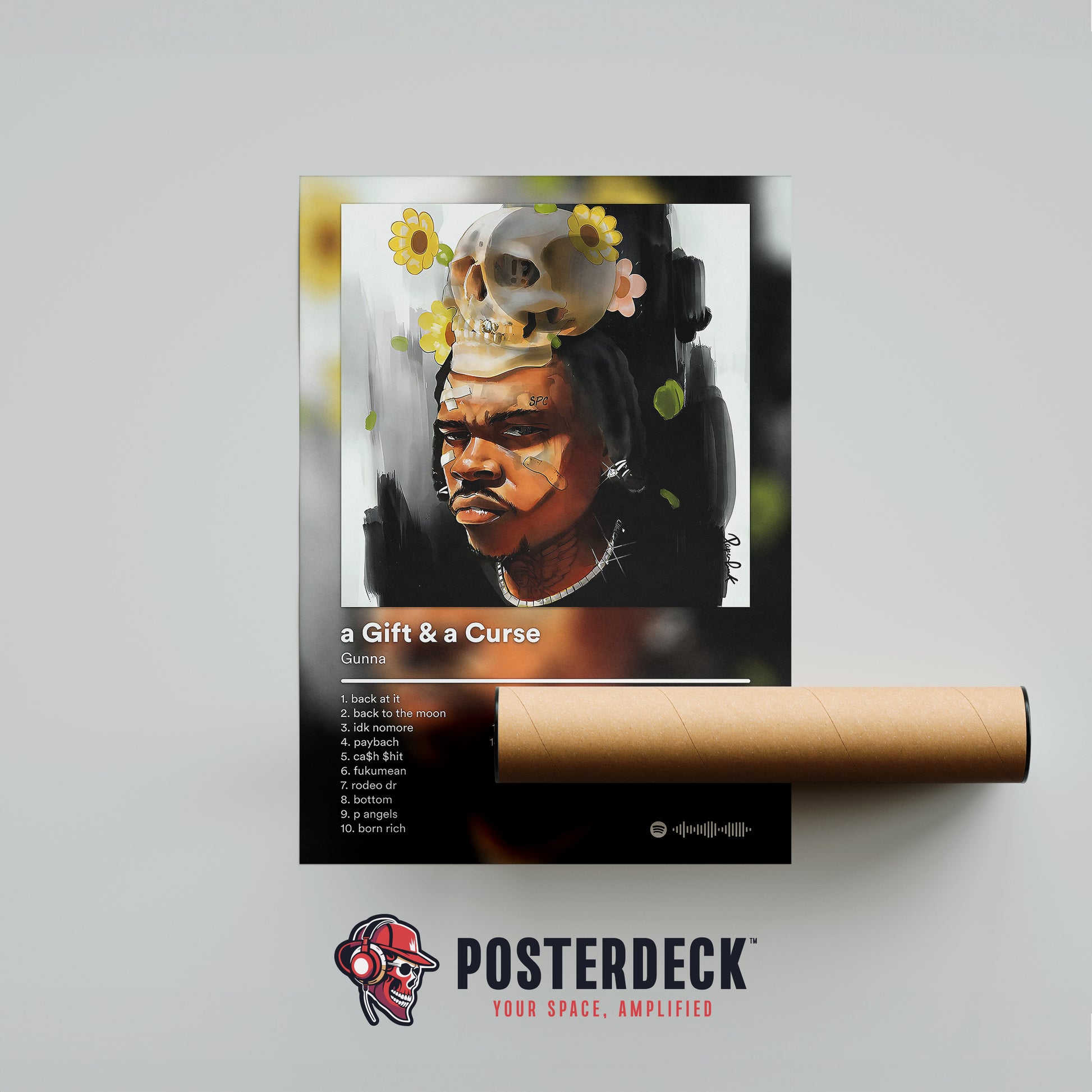 This poster highlights a Gift & a Curse, an album shaped by pressure, resilience, and quiet confidence. The expressive artwork reflects Gunna’s mindset during a defining moment in his career. A strong choice for fans drawn to emotional depth and growth.