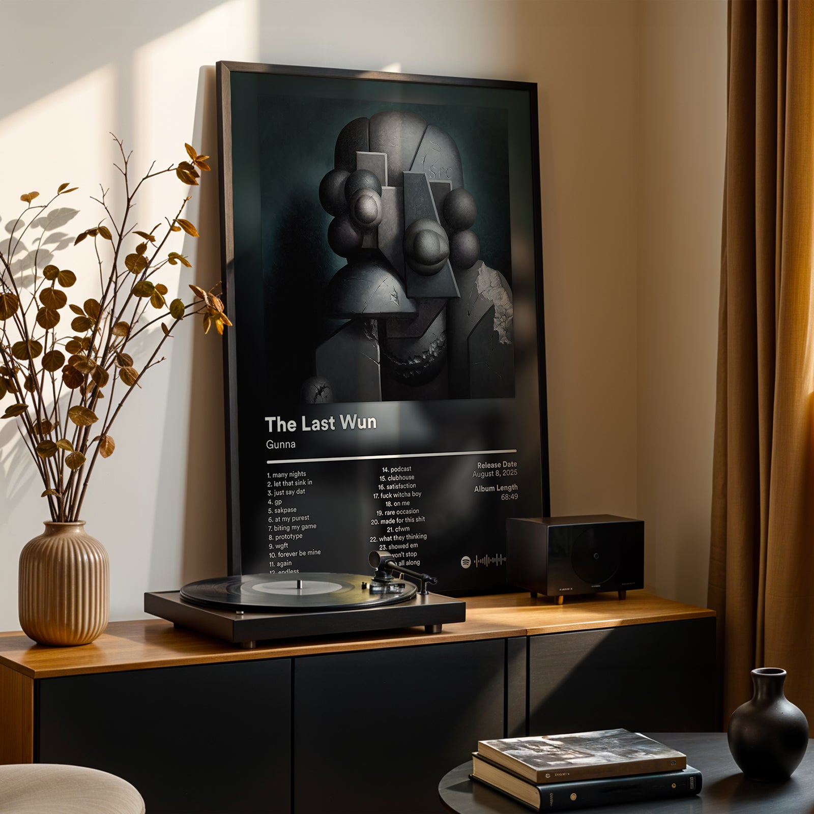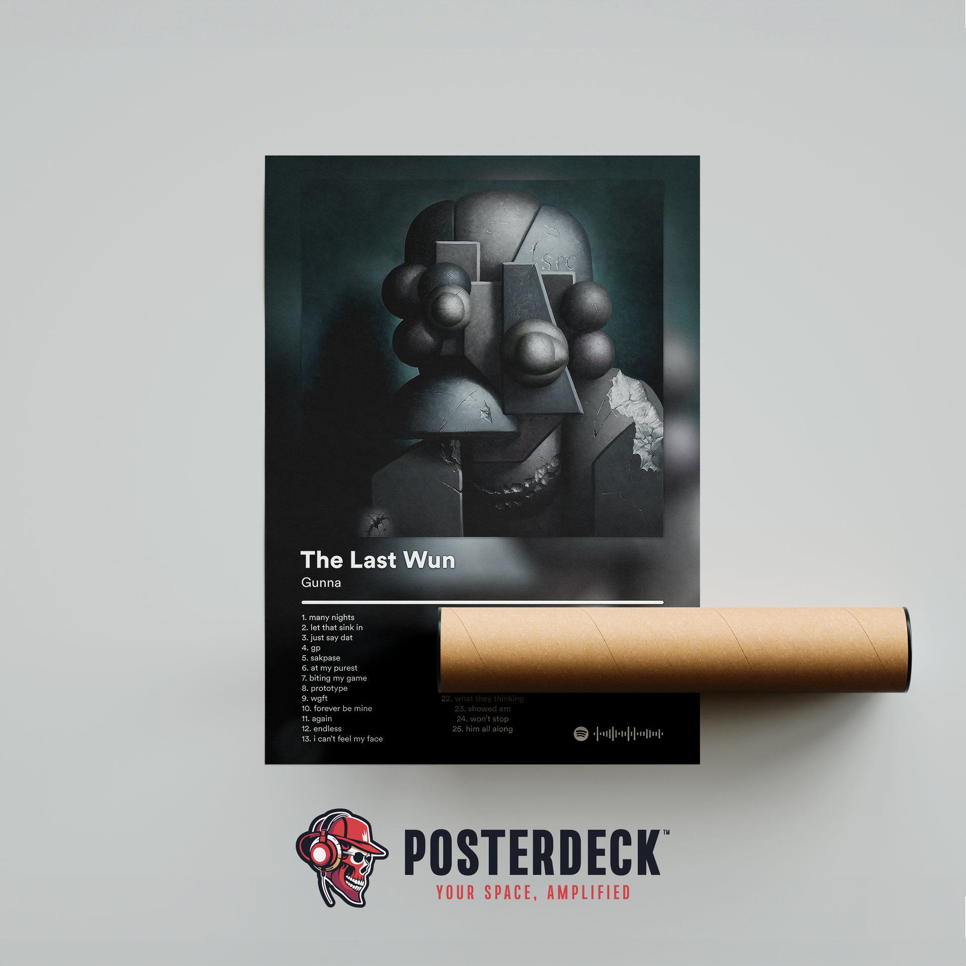 This poster captures The Last Wun as a dark, introspective chapter defined by pressure, reflection, and resilience. The fractured sculpture imagery mirrors themes of mental weight and personal evolution. Ideal for fans who connect with Gunna’s more reflective side.