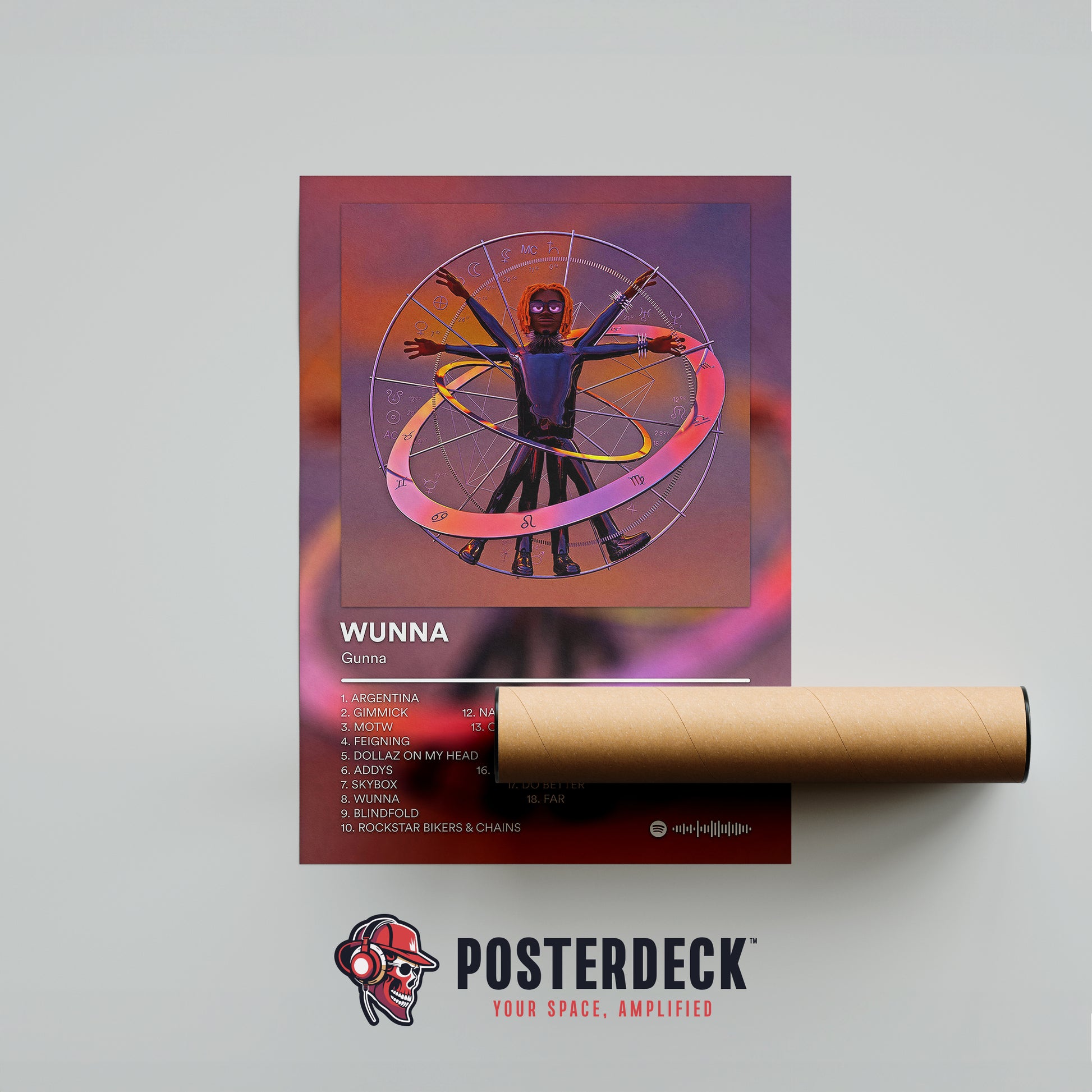 This poster represents WUNNA as a bold statement of confidence, creativity, and rebirth. The celestial, Vitruvian-inspired artwork reflects balance, ambition, and self-belief. Perfect for fans of Gunna’s most colorful and expressive era.