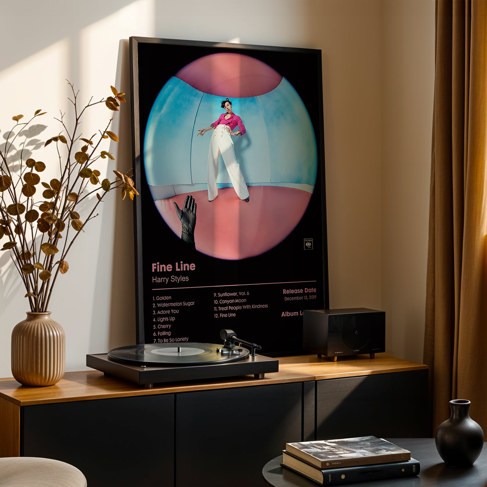 This Fine Line poster channels the album’s vibrant, playful spirit with its bold fisheye imagery and pastel palette. The dynamic composition perfectly captures the joy, heartbreak, and artistic freedom that define the record.