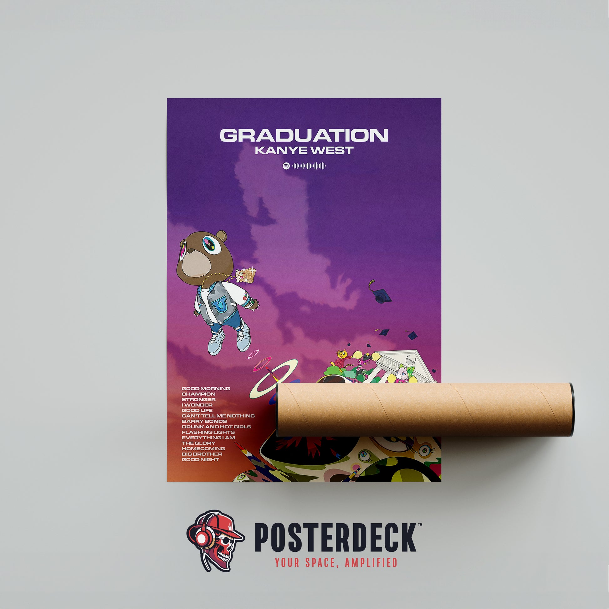 Bursting with color and imagination, this Graduation poster showcases Takashi Murakami’s iconic artwork in all its surreal, vibrant detail. The bold, futuristic visuals capture the triumphant, larger-than-life energy that defined Kanye’s genre-shifting era.