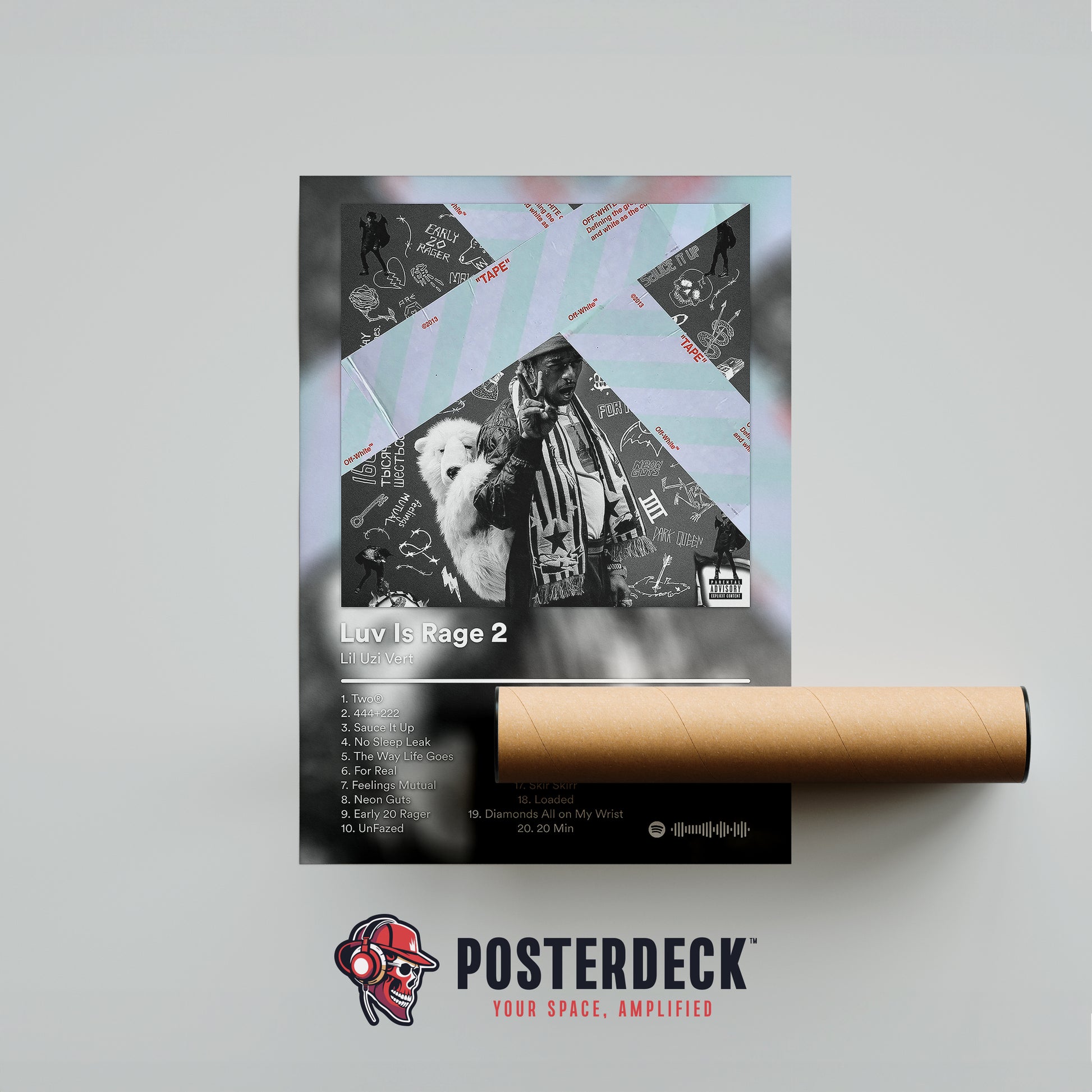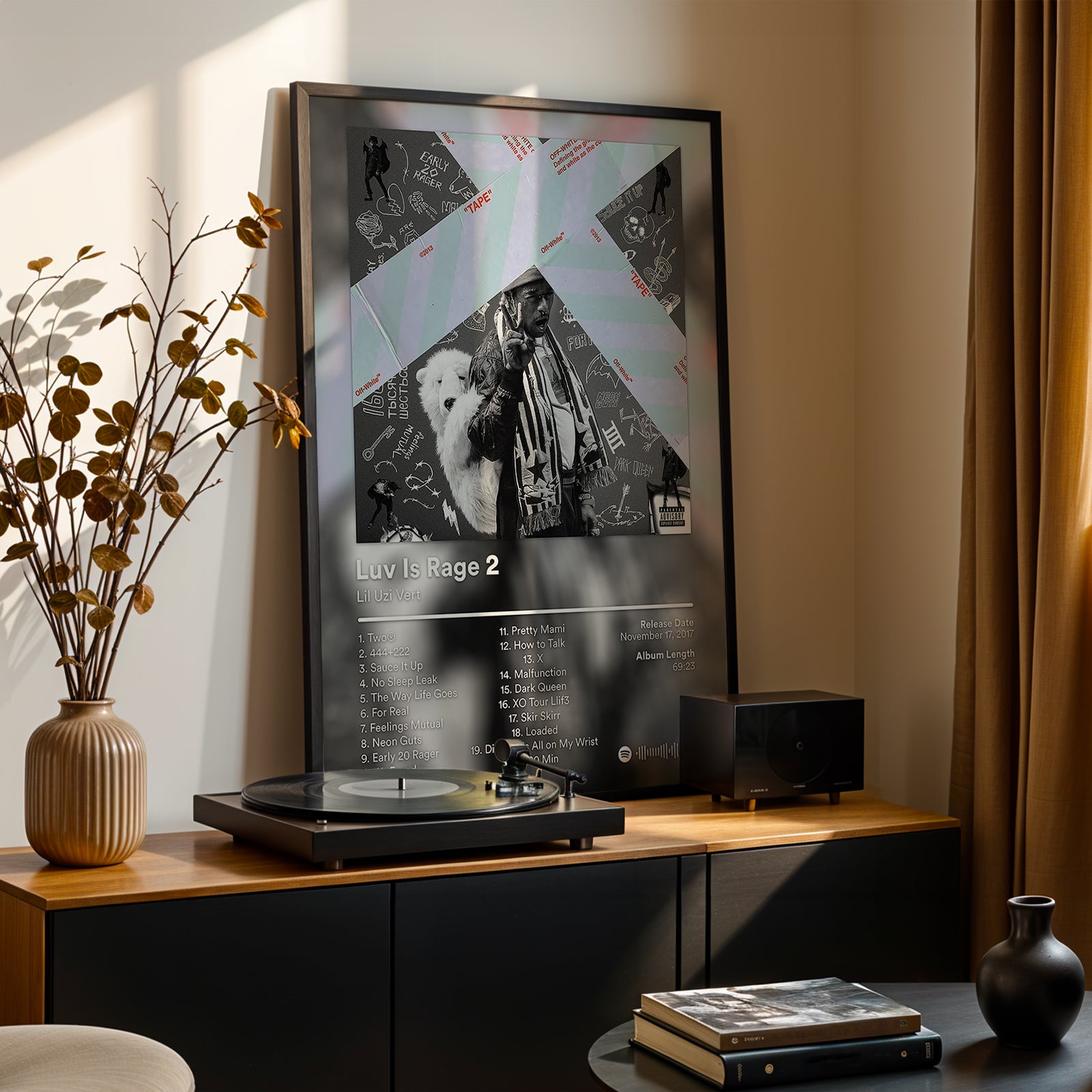 Dark and emotionally charged, this poster reflects heartbreak, rage, and self-destruction. The raw collage-style artwork matches the album’s vulnerability and intensity. Ideal for fans who resonate with Uzi’s pain-driven classics.