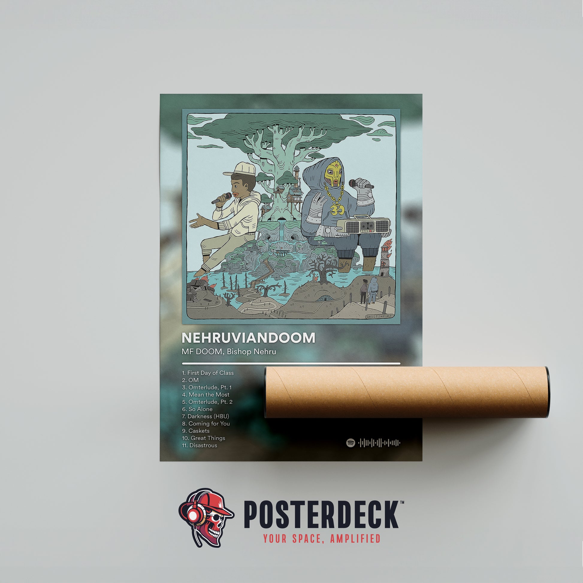 A poster honoring MF DOOM’s collaboration with Bishop Nehru, blending introspection and villain-style production. A nod to the mentor-student dynamic that shaped Nehru’s sound.