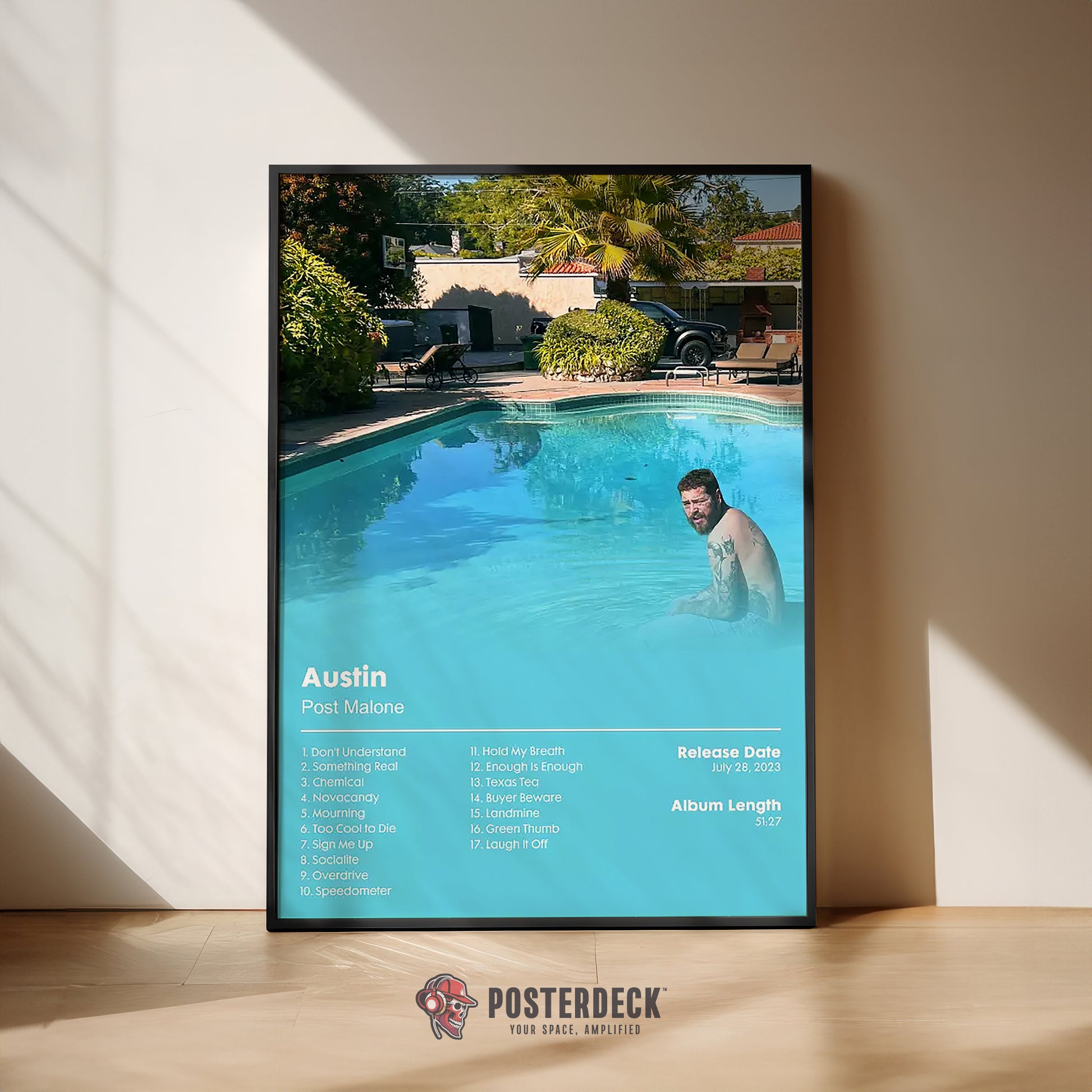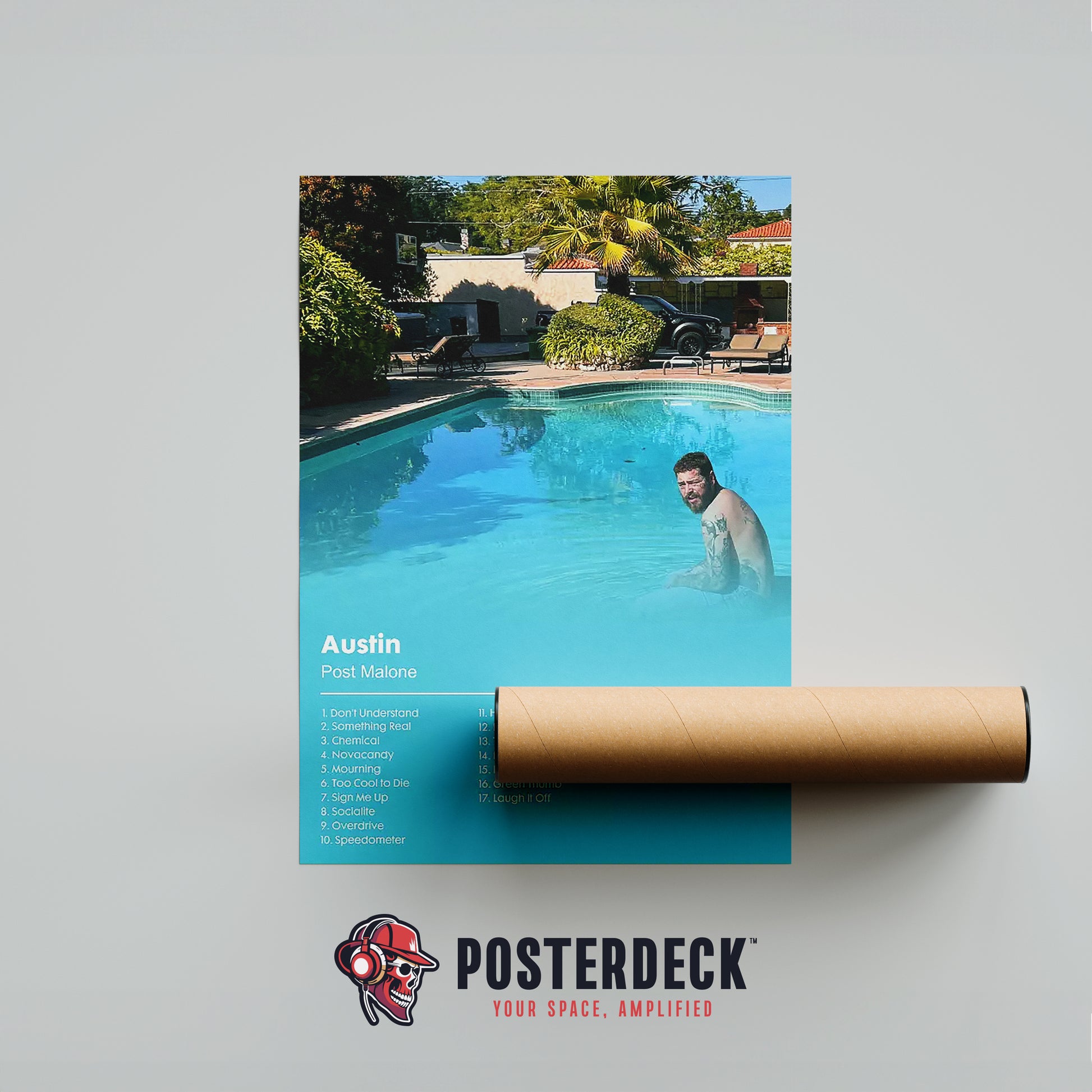 This Austin poster captures the laid-back, sun-drenched vibe of Post Malone’s most personal era. Its relaxed poolside setting mirrors the album’s warm, introspective feel and easygoing sound.