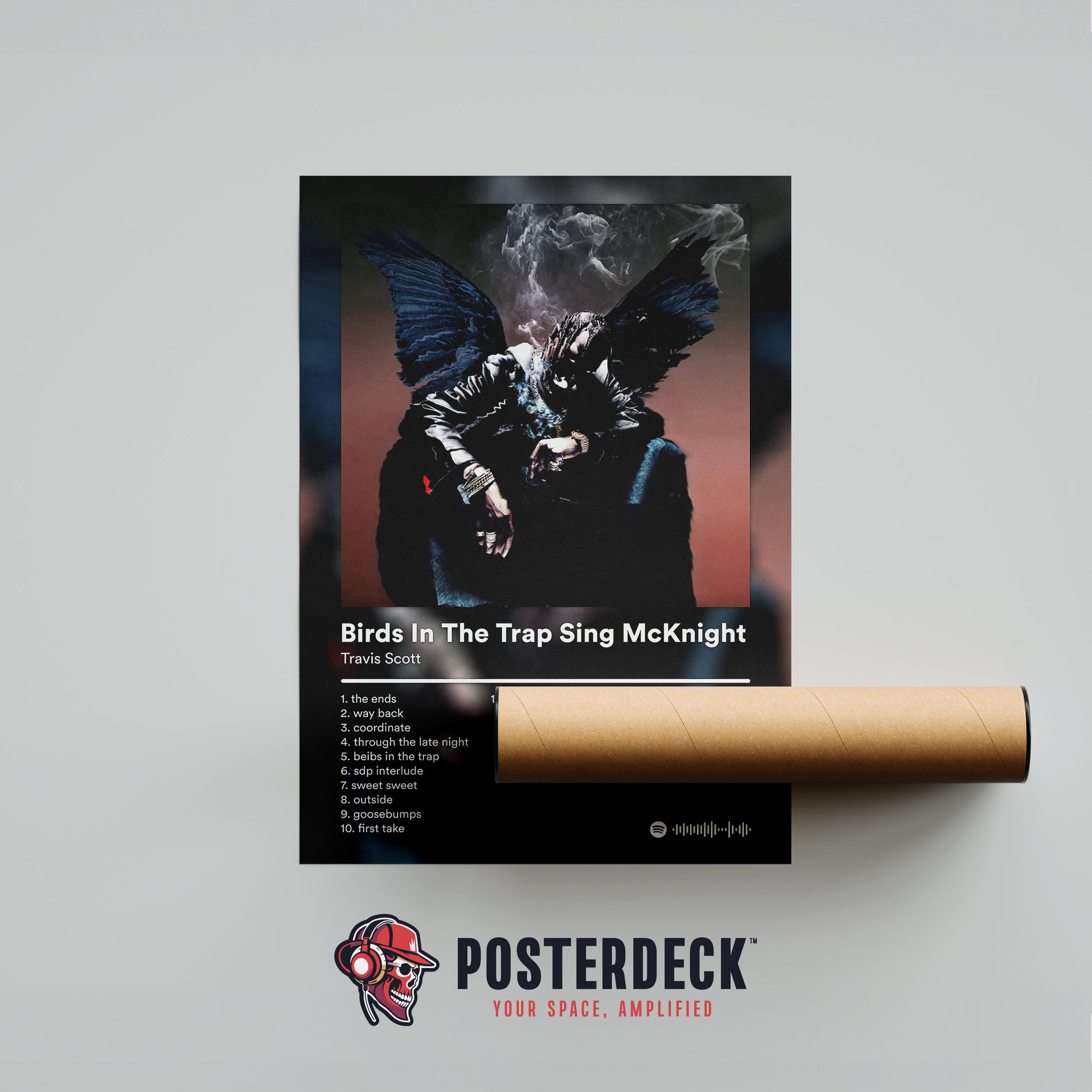 This Birds In The Trap Sing McKnight poster reflects the album’s dark, atmospheric energy, pairing moody tones with its angelic-meets-chaotic imagery. It captures the emotional depth and trap-driven sound of the record.