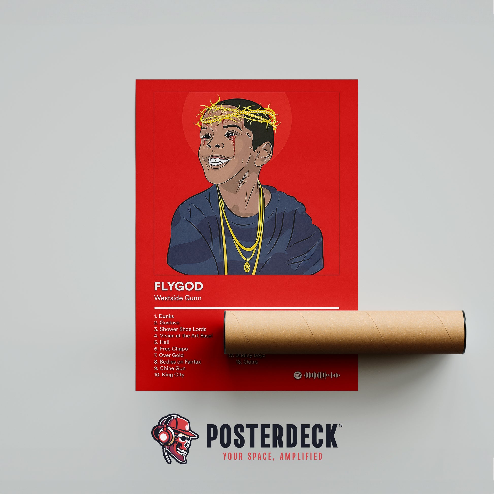This poster showcases Flygod, the cult classic that introduced Westside Gunn’s raw aesthetic to a wider audience. With grimy beats, vivid storytelling, and unmistakable ad-libs, the album became a cornerstone of modern underground rap. Perfect for fans who appreciate unfiltered, boom-bap revivalism.