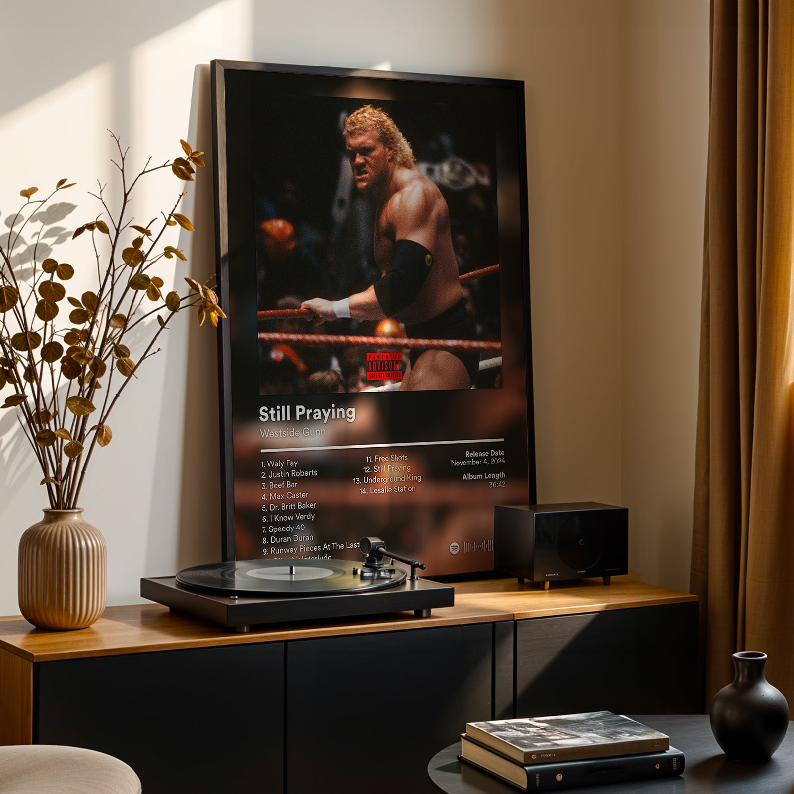 This poster highlights Still Praying, a project rooted in perseverance, struggle, and luxury aesthetics. The album reflects Westside Gunn’s continued hunger while staying true to his gritty sound. A great addition for fans following his more recent releases.