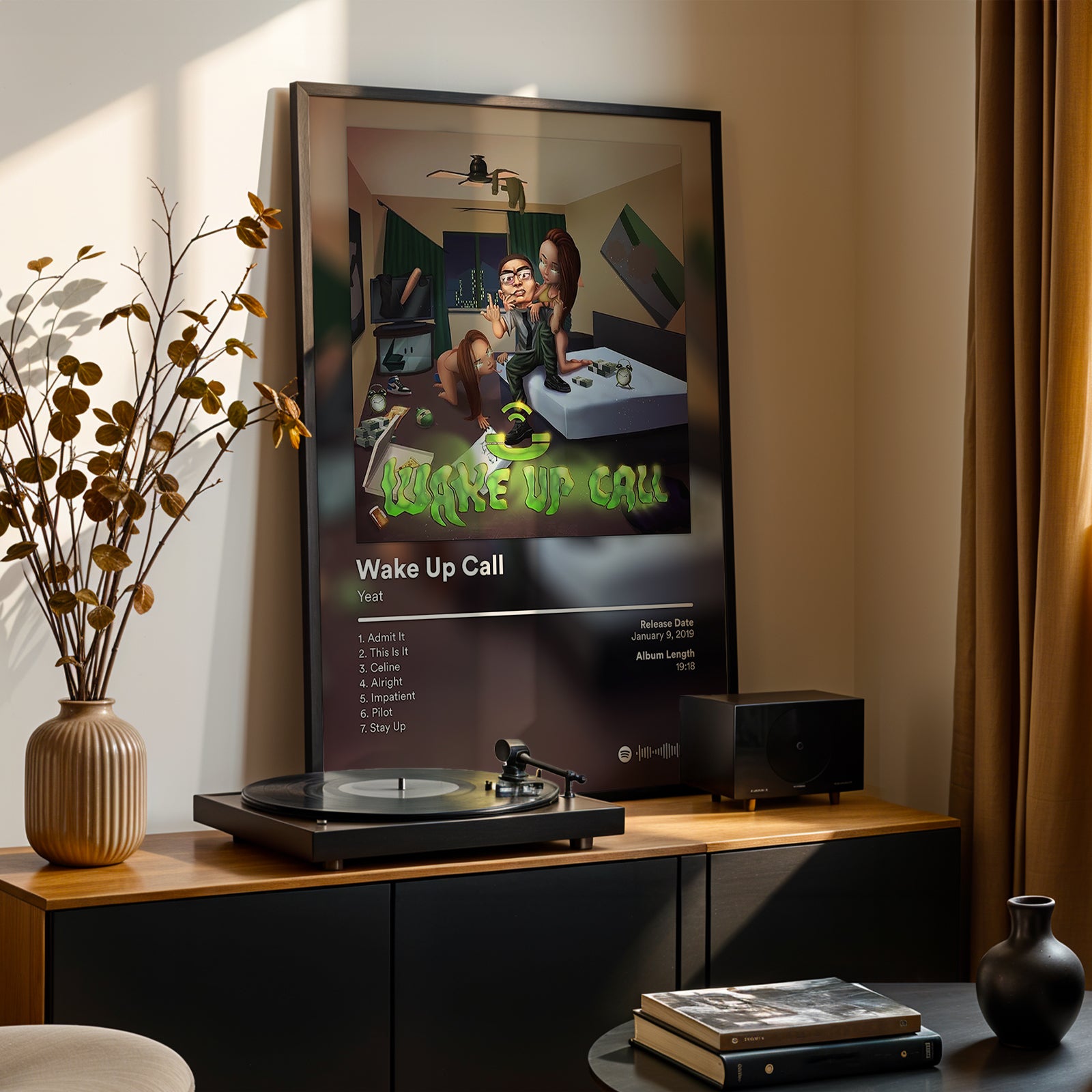 This poster captures Yeat’s Wake Up Call era, reflecting his early sound, ambition, and raw hunger. The stylized artwork mirrors the project’s themes of grind, pressure, and self-awareness before the breakthrough years. A standout poster for fans who appreciate Yeat’s beginnings and artistic evolution.