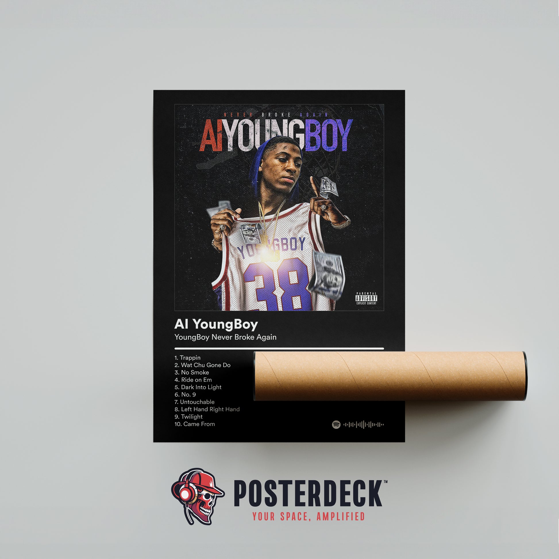This poster showcases the breakthrough AI YoungBoy era, highlighting confidence, hunger, and rising stardom. With its striking visuals and classic layout, it’s an essential addition for fans who want to display one of YoungBoy’s most important releases.